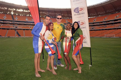 "As this is the venue that will host both the opening and closing ceremonies we wanted to incorporate all the countries participating in the event," said 94.7 Highveld Stereo station manager, Ravi Naidoo. "As always, we also wanted to involve our listeners so we decided to paint 32 of our listeners in the flags of the 32 nations that will be taking part.